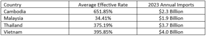 东南亚四国光伏企业税率情况;来源:美国商务部