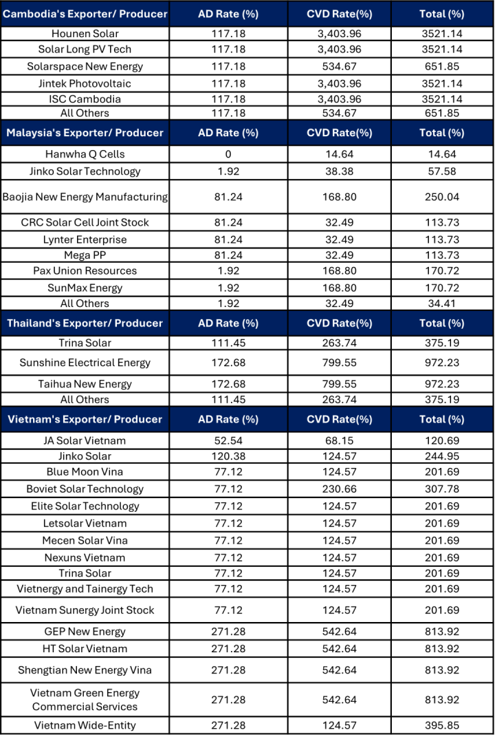 这些新裁定的双反税,再叠加特朗普之前实施的10%“互惠关税”、201税等,对于东南亚光伏产能来说,无疑是致命一击!